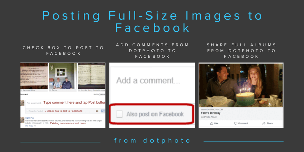 dotphoto even uses the Facebook commenting system so that, when your friends make comments and interact with the shared photos in dotphoto, their comments appear on your Facebook post as well. You can maintain the same level of community that Facebook provides without sacrificing your pictures’ quality and size.